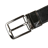 Мужской брючный ремень. Изготовлен из высококачественной кожи. Универсальная классическая двусторонняя модель - простым поворотом пряжки меняет цвет полотна (чёрный/коричневый). Размер пряжки: 5 см х 4 см. Поставляется в фирменной коробке.