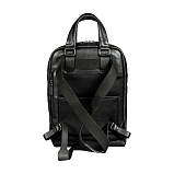 Стильный рюкзак из мягкой натуральной кожи Vachetta. Закрывается на двухстороннюю молнию. Внутри просторное отделение с карманом-перегородкой на молнии и с двойным карманом для планшета и документов на липучке. Там же расположены: 5 кармашков для пластиковых карт. 2 держателя для авторучек. Карман для телефона и карабин для ключей на лямке. Закрывается на двухстороннюю молнию. Снаружи на лицевой и тыльной стенках по карману на молниях. Оснащён регулируемыми плечевыми лямками.