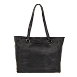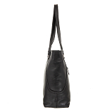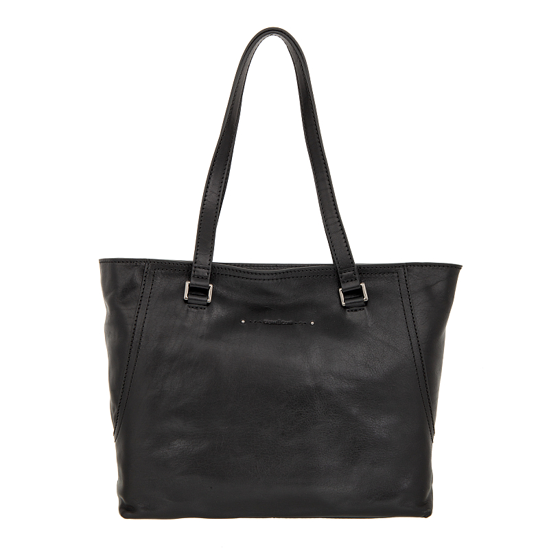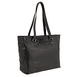 Женская чёрная кожаная сумка Gianni Conti в классическом стиле. Закрывается на молнию. Внутри два отделения, карман-перегородка на молнии, два открытых кармашка для мелких предметов, держатель для авторучки и карман для документов на молнии. Снаружи на внутренней стороне карман на молнии. Оснащена двумя удлинёнными кожаными ручками, что позволяет носить сумку на плече. Цвет фурнитуры - серебро. Размеры: 27 х 39 х 12,5 см.